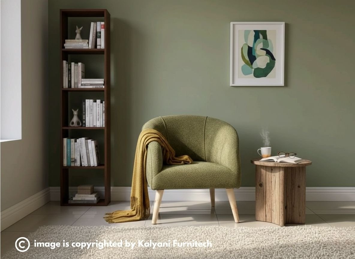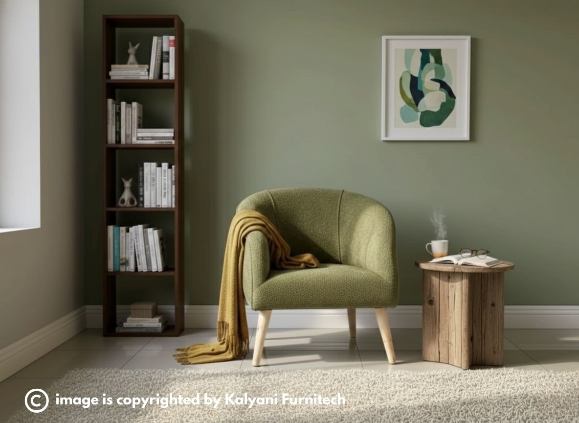The Signature Accent Chair Collection by Kalyani Furnitech Pune highlights premium single-seater designs crafted to add style, comfort, and elegance to any space. Each chair features high-quality upholstery such as velvet, polyester, or textured fabric, paired with a sturdy wooden frame and high-density cushioning for lasting comfort.