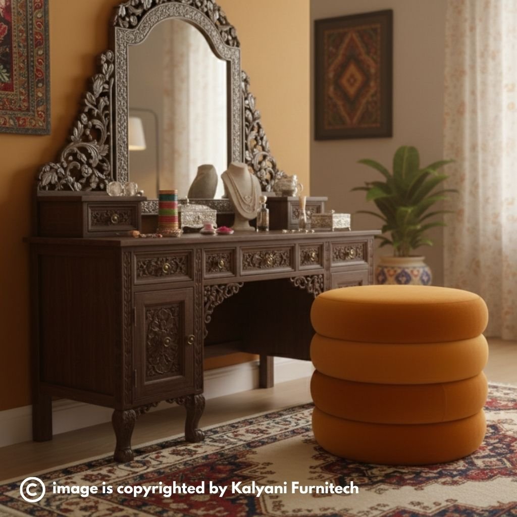 The Pouffe & Ottoman Collection by Kalyani Furnitech Pune brings versatile style and comfort into any living space. Each piece is crafted with premium upholstery such as velvet, polyester, or textured fabric, paired with durable wooden framing and soft cushioning for a cozy seating experience.