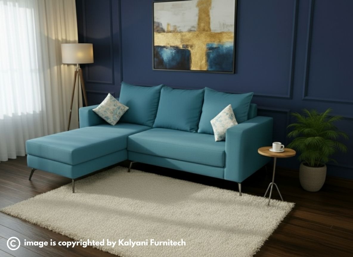 The sofa with lounger from Kalyani Furnitech Pune is designed to offer extra comfort and modern style for any living room. The lounger section allows you to stretch your legs and relax while enjoying a spacious seating experience. Built with a strong wooden frame and soft, high-density cushions, it provides durability and long-lasting comfort. Its elegant shape fits perfectly in both compact and large spaces.