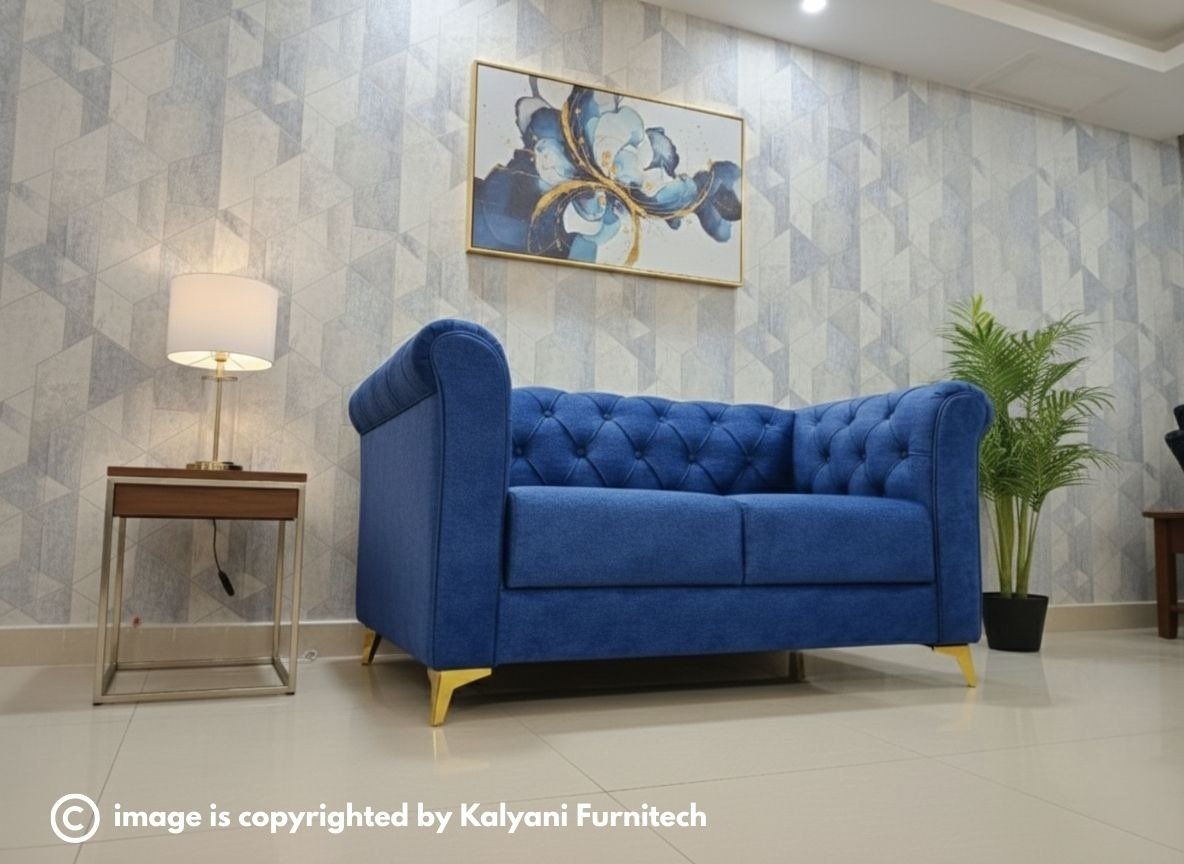 The two-seater sofa from Kalyani Furnitech is designed for compact spaces while maintaining a stylish and modern look. It is crafted with a strong wooden frame and high-density foam for long-lasting comfort. The fabric used is soft, durable, and easy to maintain for everyday use. This sofa provides excellent support, making it perfect for small living rooms or office seating.